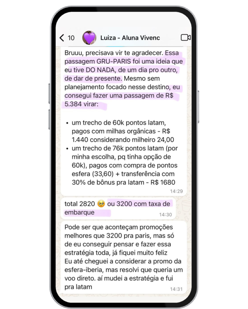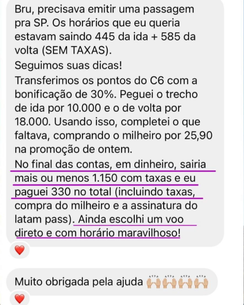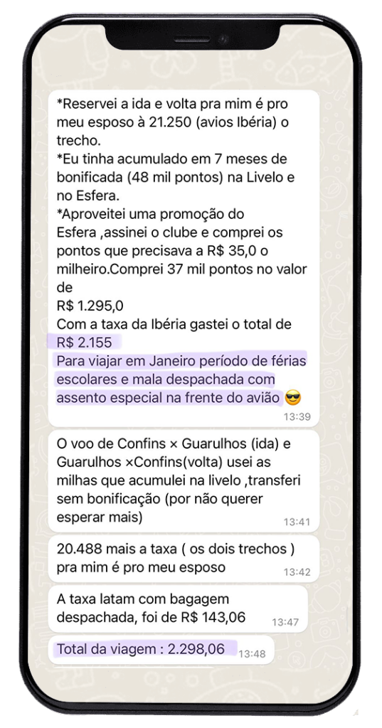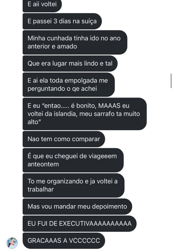 Jéssica é uma das minhas alunas que entrou no curso sem entender sobre milhas e em 07 meses de curso e dedicação estava com passagem de ida e volta para Europa emitida, para janeiro – época de férias – saindo de Belo Horizonte e pagando apenas R$2.300.