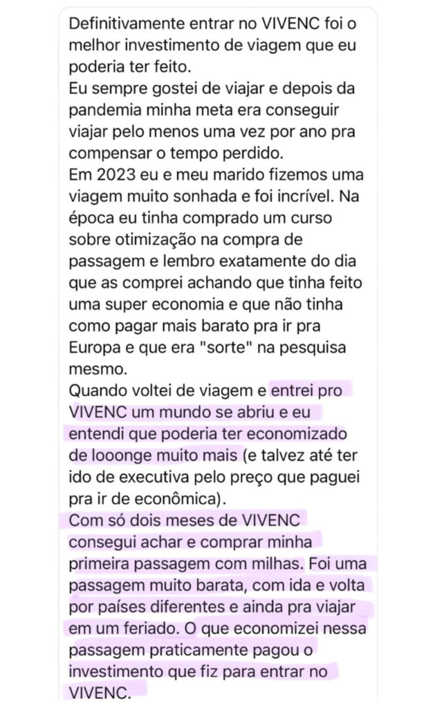 No vivenc temos aulas gravadas, desde o básico sobre acúmulo de pontos a emissões de passagens aéreas e reserva de hospedagens pagando com milhas.